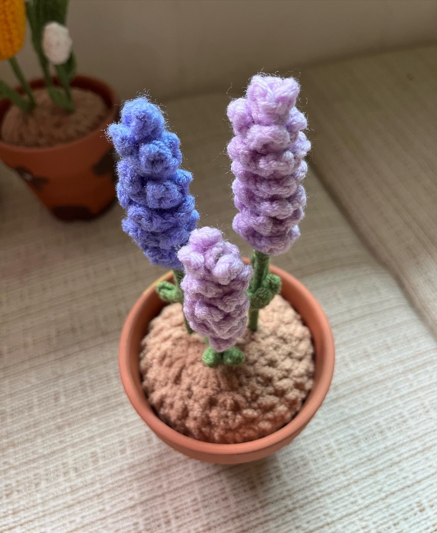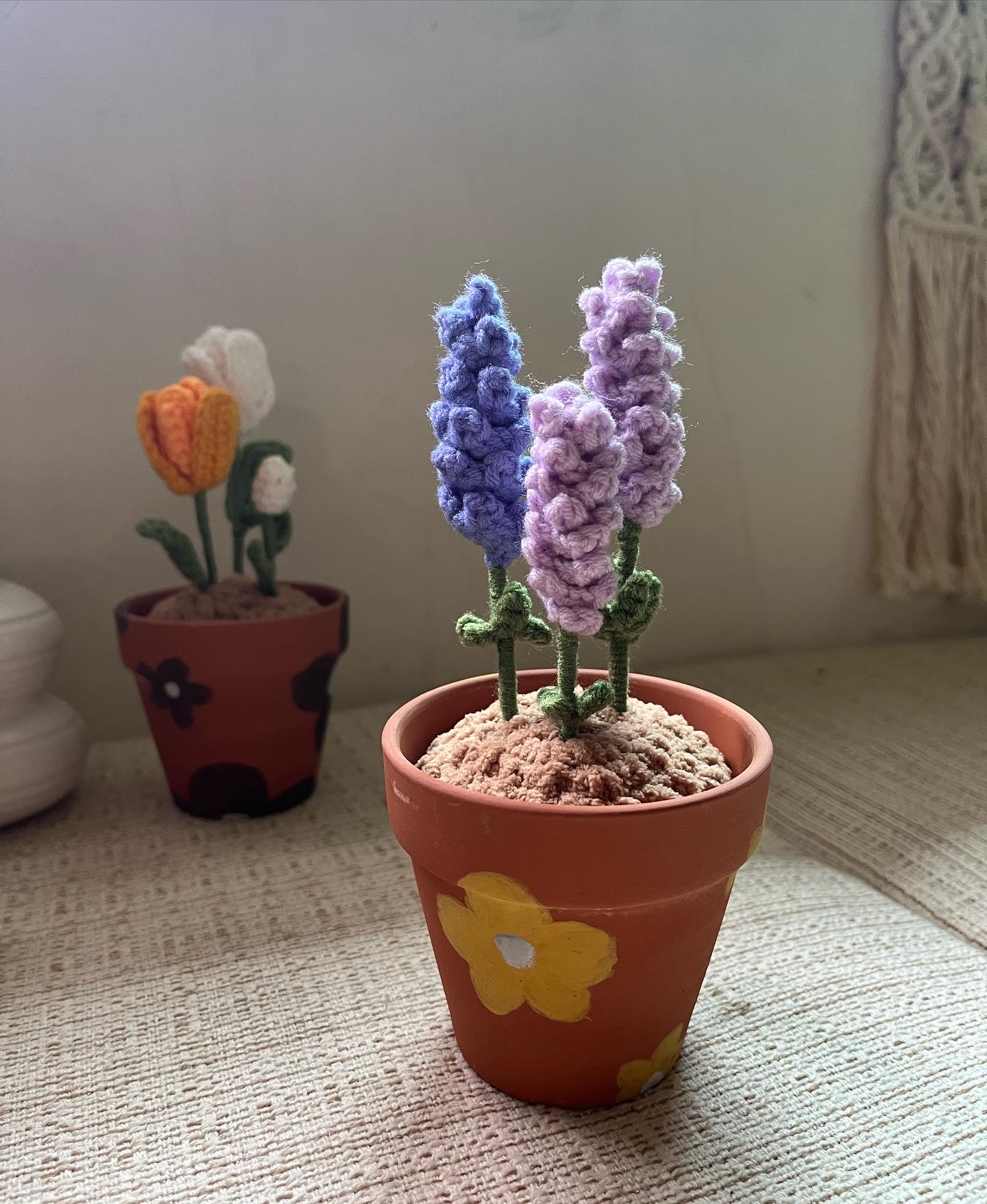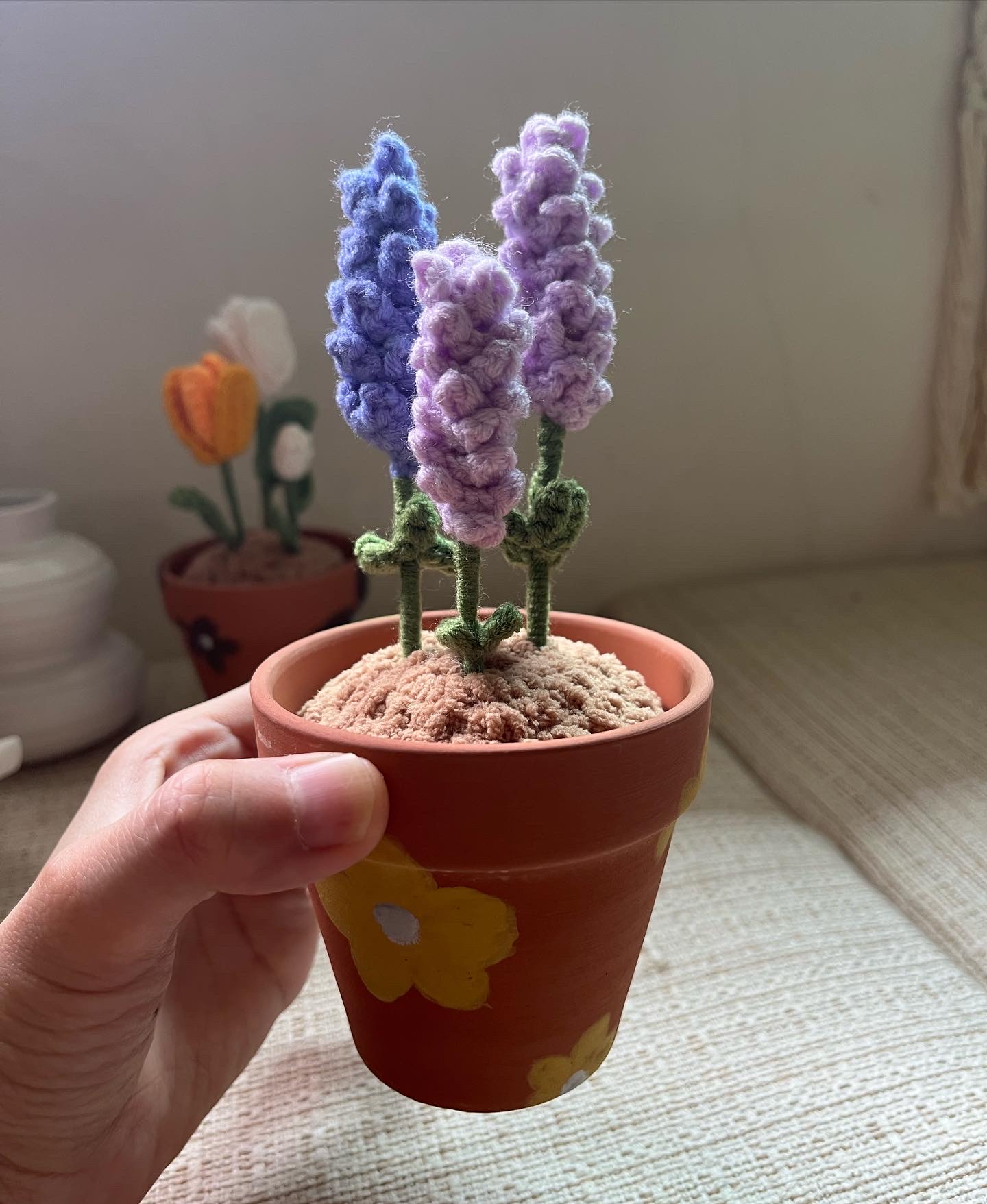 薰衣草3朵含盆器高度約18cm 盆器為陶製, 圖案為手工繪製, 使用壓克力顏料